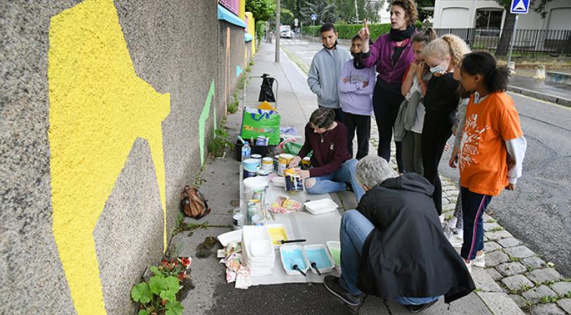 Pour finir l'année en beauté, les élèves de 5 écoles lyonnaises, accompagnés par 5 artistes en partenariat avec le MAC de Lyon, ont eu l'opportunité de créer des oeuvres collectives éphémères dans la rue piétonnisée devant leur école. L'occasion pour les enfants de se réapproprier l'espace public dans une ambiance apaisée et créative. Rencontre avec les écoliers de Gerson (Lyon 5e).