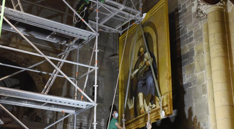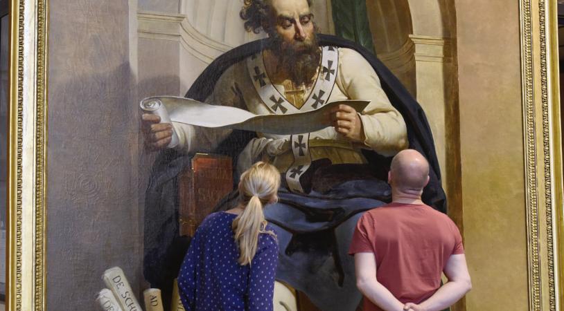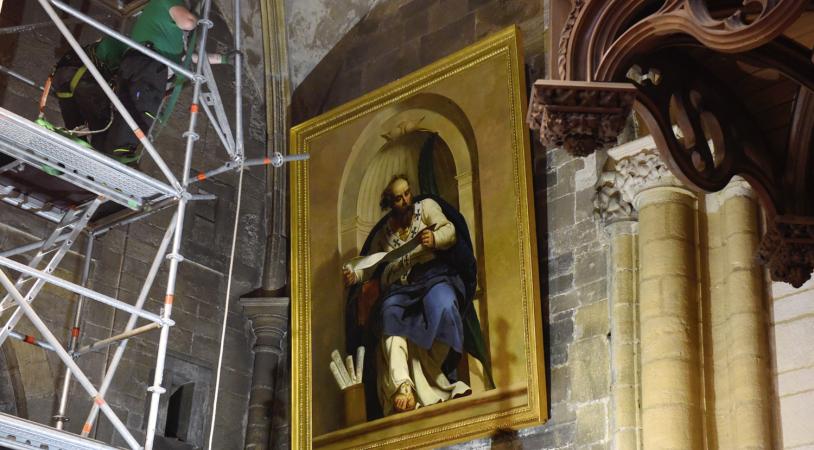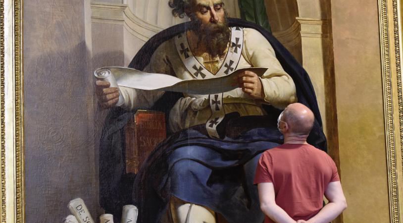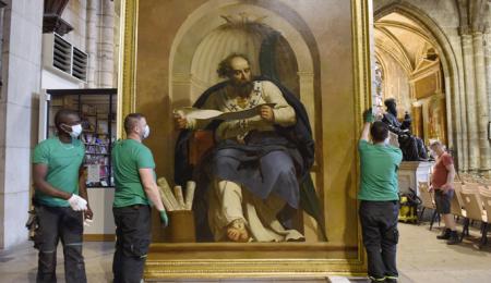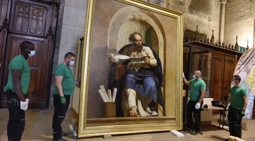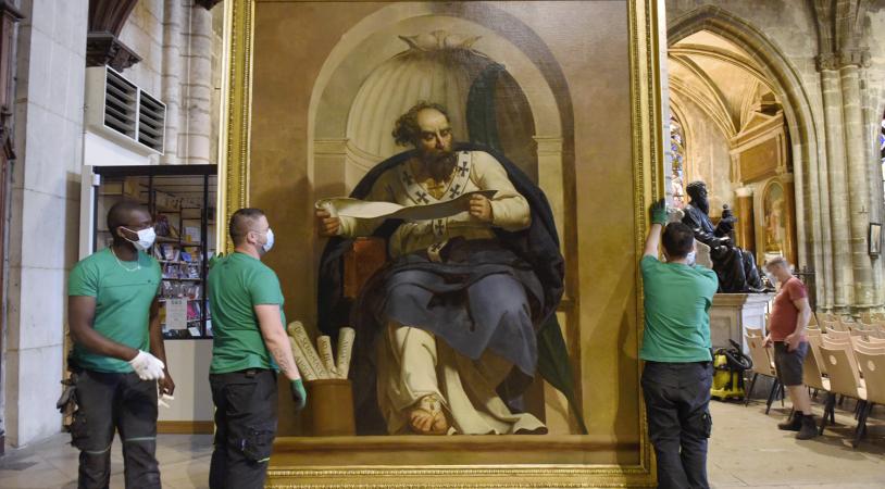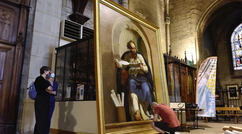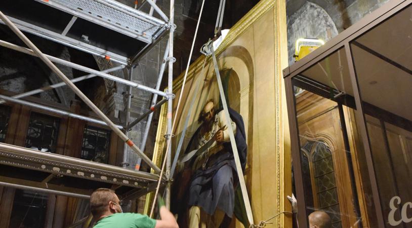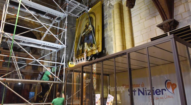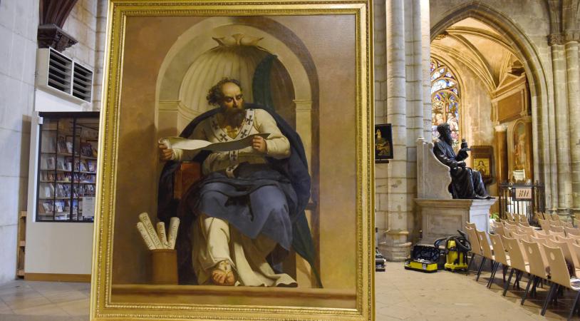 Les travaux de restauration du tableau L’évêque saint Irénée, peint par l’atelier d’Antoine-Jean Gros, ont pu être réalisés dans les délais prévus malgré la crise sanitaire qui a bouleversé notre vie quotidienne ces derniers mois. Ainsi, ce 27 mai 2020, le tableau a retrouvé celui représentant L’évêque saint Nizier, restauré en 2010, en lieu et place de L’évangéliste saint Matthieu qui partira à son tour à l’atelier Julie Barth pour une restauration qui devrait durer six mois.