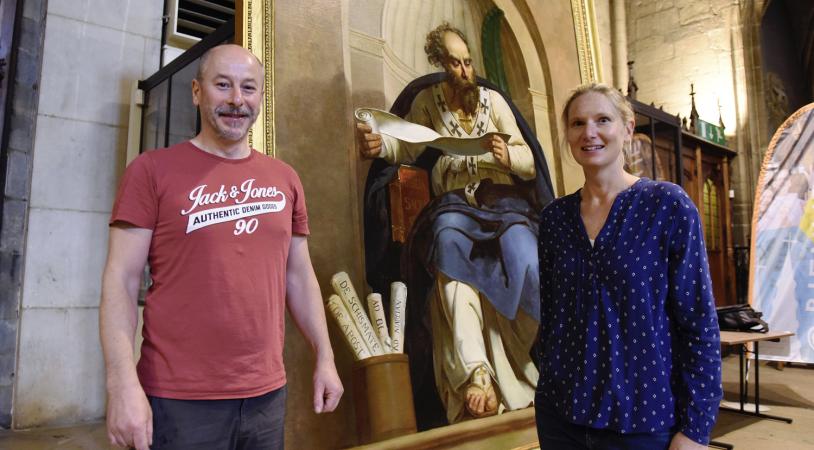 Les travaux de décrassage et de restauration vont permettre aux visiteurs et aux paroissiens de redécouvrir toute la splendeur de L’évêque saint Irénée, à travers un nouveau châssis, une meilleure lisibilité de sa composition, une dorure ravivée et des couleurs éclatantes.