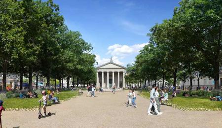 Un renforcement de la végétation est prévu avec la plantation de 17 arbres sur le pourtour de la place ainsi que la végétalisation des pieds d’arbres. 1 600 m² d’espaces seront désimperméabilisés pour permettre l’infiltration des eaux pluviales. 1 500 m2 de végétalisation viendront compléter la plantation d’arbres.