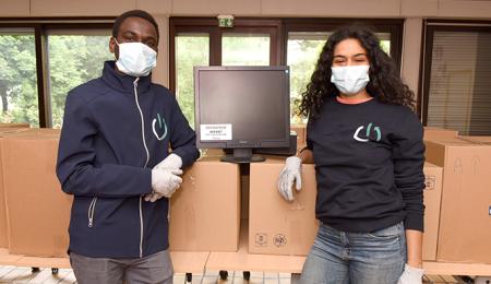 Pour ce faire, elle s'est adressée à Weeefund. Tout au long de l'année, l'association lyonnaise récupère des ordinateurs usagés, les reconditionne puis les remet à des établissements scolaires qui projettent de créer une salle informatique. Via cette action sociale, Weefund contribue à la réduction du gaspillage électronique et à la protection de l'environnement. « Elle s’est chargée de vider les unités centrales et d’y associer les périphériques (écran, clavier…). » Elle a aussi assuré la logistique pour la livraison dans des points relais que sont les MJC, Centres sociaux… Autre partenaire de l'opération, l’association Emmaüs connect a mis à disposition les connexions pour les familles en difficulté.