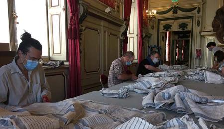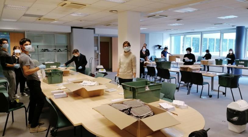 Une trentaine de centres sociaux, MJC, clubs sportifs et autres comités des fêtes ont répondu spontanément à l’appel lancé par la Ville de Lyon lors de deux livraisons successives de 100 000 puis 160 000 de ces masques lavables 10 fois. Au moins 600 personnes se sont portées volontaires, selon les estimations, pour découper les bandes de masques, ajouter la barrette nasale et envelopper le tout dans un sachet avec la notice d’utilisation.