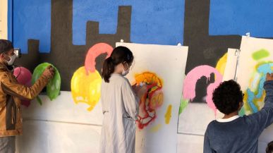 Deux classes de CE1 de l'école Lumière ont réalisé en juin une immense peinture murale imaginée encadrée par l'artiste urbain Big Ben.