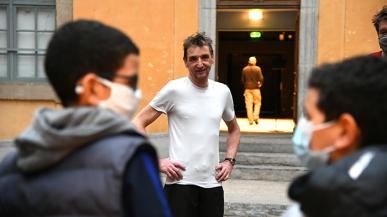 Le performeur Denis Mariotte propose des parcours de médiation à des petits groupes d’élèves lyonnais.