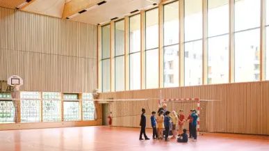 Une plaque est dévoilée dans le gymnase qui porte le nom de cette militante des droits des femmes et du droit à l’éducation physique.