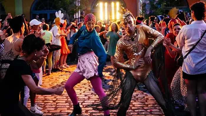 Quatre personnages décalés enchaînent les costumes et entrainent progressivement le public dans un tourbillon de paillettes et de lumière. Ici, tout le monde – peu importe son genre, ses origines, son âge, ses capacités, son style, ses goûts – a sa place sur ce terrain de jeu éclatant d’énergies contagieuses.