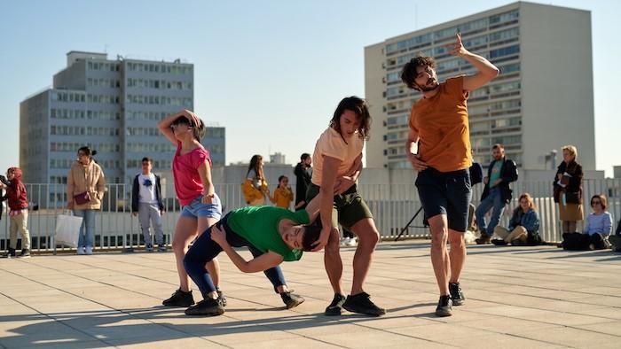 Pazaz - ici ça danse YUVAL PICK - CCN de Rillieux-la-Pape : Pazaz lance un cri spontané qui invite au mouvement, à la joie et à la rencontre improvisée dans l’espace public. Entre solos, duos et trios, les interprètes explorent la configuration particulière d’un lieu. Un coeur qui bat, un choeur qui bat, et une phrase performative qui s’écrit entre quatre danseurs, le public et l’espace où ils se trouvent.