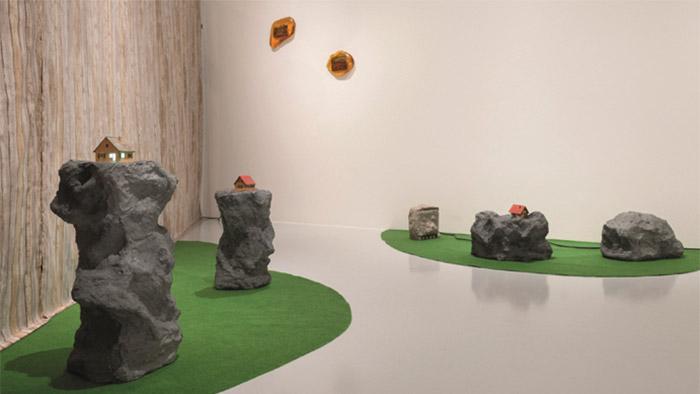 Swiss Flex pousse à s’interroger sur la manière dont nous construisons nos illusions pour atteindre cet état de sérénité et de confort en proposant un environnement miniaturisé à la fois étrange et artificiel.