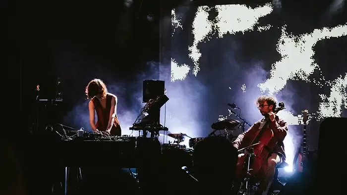 Odalie propose une musique électronique organique et texturée entre electronica, modern classical et techno. Violoncelle et synthétiseur modulaire se mélangent à travers textures et arpèges pour dessiner un paysage musical entre l’immense et l’intime, un live plein de contrastes et d’émotions brutes.