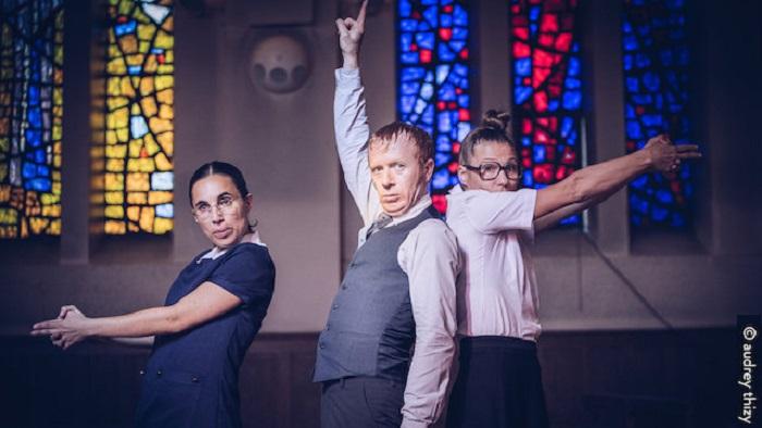 Sur scène un trio loufoque vous parait sortir tout droit de l’une de ces chorales de paroisse qui sévissaient dans le début de la seconde moitié du 20ème siècle.