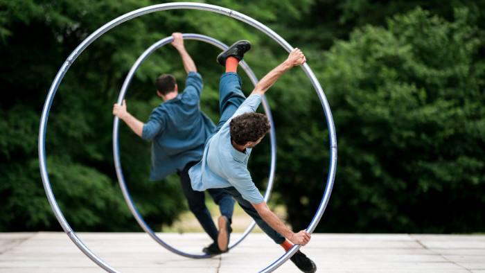 A travers cette pièce, les mouvements des corps répondent à l’élan des roues et tracent avec force et délicatesse un univers hypnotique où les sensations de poids et d’élévation s’entremêlent.