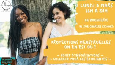 Faire le point sur l’accessibilité aux protections menstruelles. Collecter des protections hygiéniques pour les étudiantes du quartier.