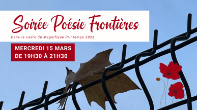 Mercredi 15 mars à partir de 19h30, venez vous évader en poésie par delà les frontières...et partager vos propres textes si vous le souhaitez.