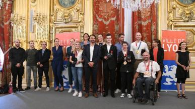 Les athlètes lyonnais ayant participé aux Jeux de Tokyo ont été reçus à l'Hôtel de Ville par le Maire et l'Adjointe aux sports.