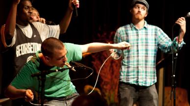 Un chanteur, rappeur, slameur et une chanteuse-poétesse sur la scène de À Thou Bout d'Chant le temps d'une soirée