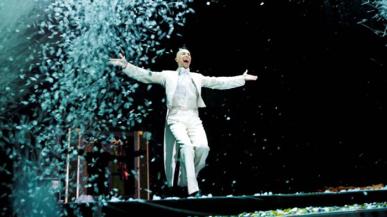 Houppette en tête, le plus grand acteur transformiste au monde est de retour avec un nouveau one man show.